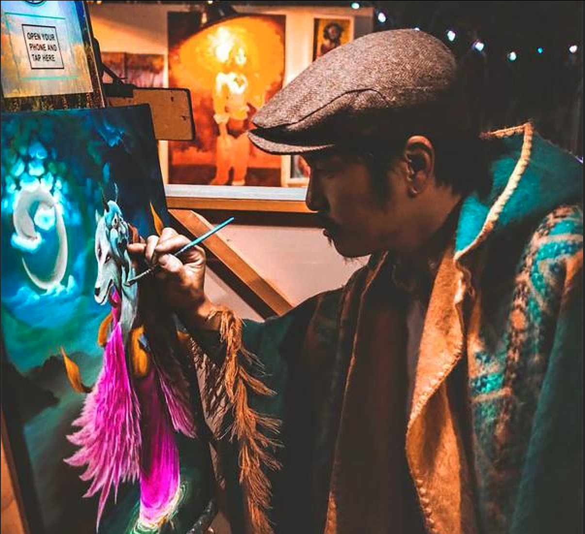 His style borders on surrealism, breathing life into defined forms and evoking the pulse of nature. An avid outdoorsman, he often ventures into the mountains alone for days of backpacking. This deep connection with nature gives his work a distinctive energy and spirit, capturing the beauty and mystery of the natural world in ways that resonate with many.